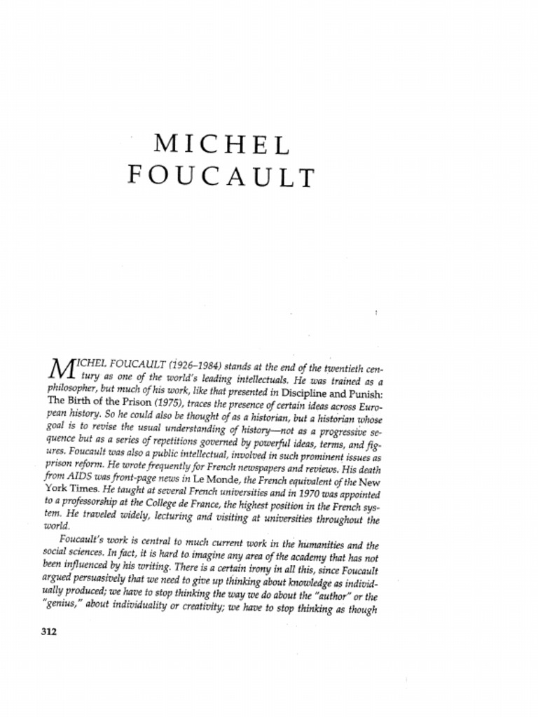 The fact that the modern citizen spends much of his life in at least some of these institutions reveals how far society has changed. It is in ultimate fear and anxiety that we live out our lives everyday. Accessed May 19, Download paper. Essay, Pages 5 words. Top Writers. Verified expert. Cite this page "Panopticism" by Michel Foucault. Related Essays.